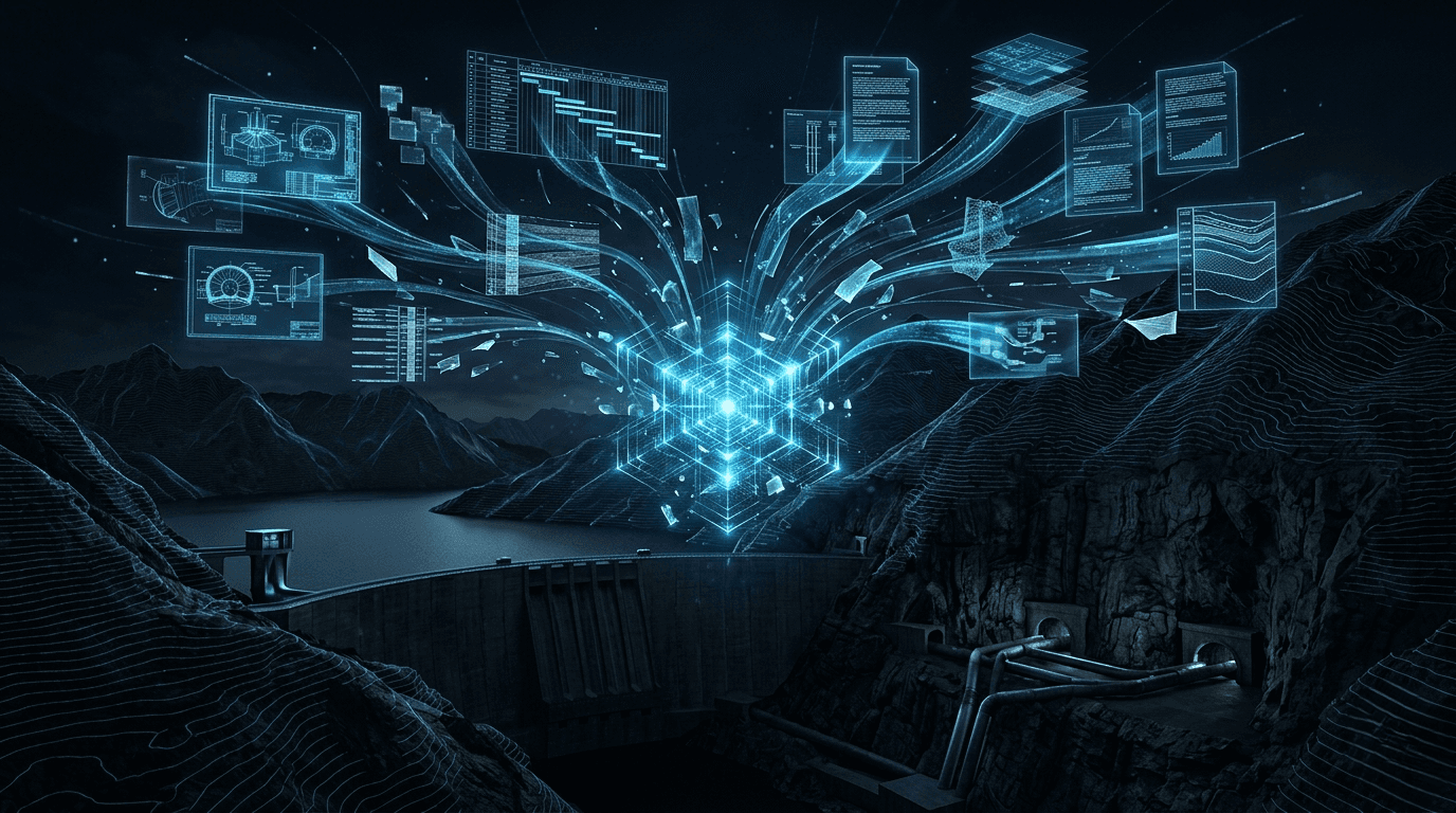 Transforming engineering reports, drawings, contracts, schedules, and geotechnical records into actionable, source-grounded project intelligence for pumped hydro storage developments.